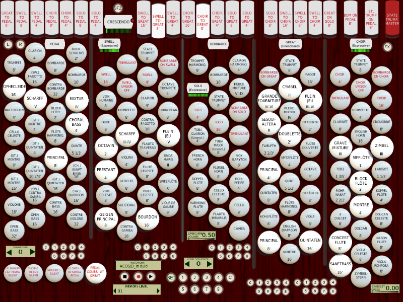 of recorded pipe sounds. The soundfont contains no recorded organ sounds. The large four manual and pedal model is