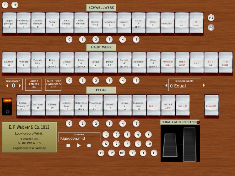 All organs in the Dutch Organ series are built from sounds and based on the instruments formerly available at