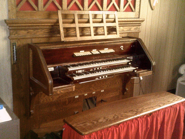 the organ makes a nice solo stop with the softer stops of the swell. It can easily be made into a “plenum” by using the 4’ coupler. For