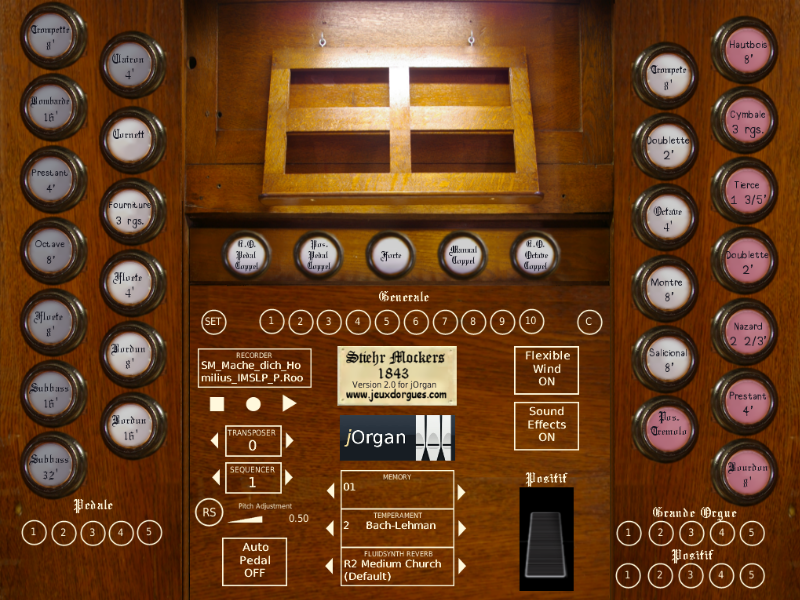 Samples were recorded by Joseph Basquin in 2000. This jOrgan disposition and soundfont features samples remastered