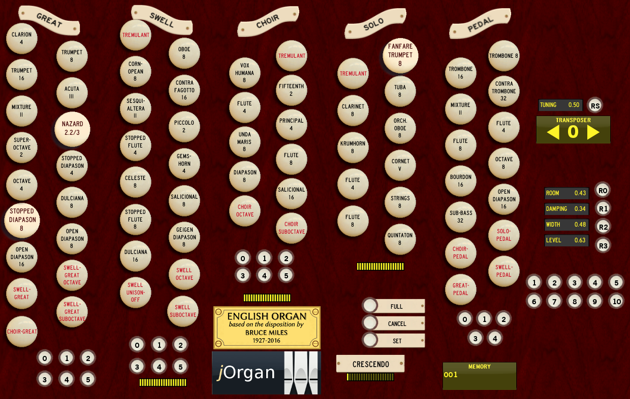 the English Cathedral Organ skin, and include twelve-step transposer and Fluidsynth reverb. The soundfont is updated